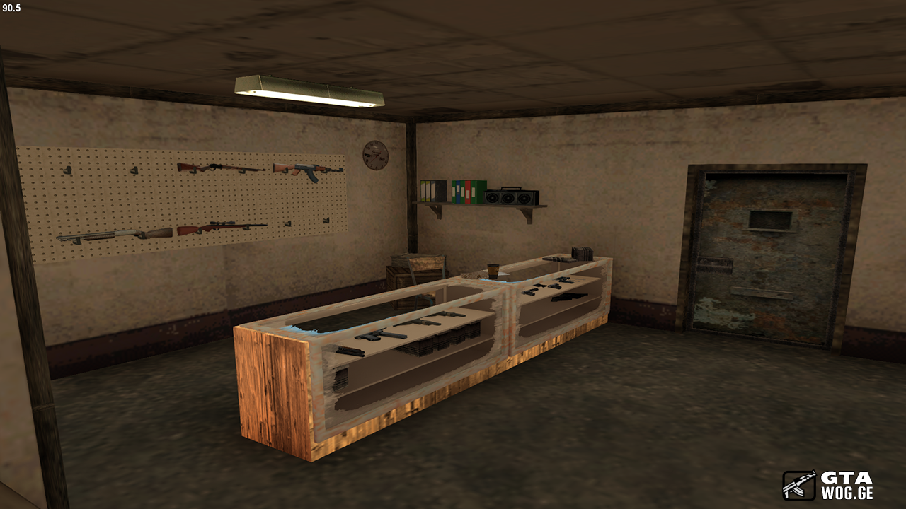აღწერა: ეს არის იარაღის მაღაზიის ინტერიერი.