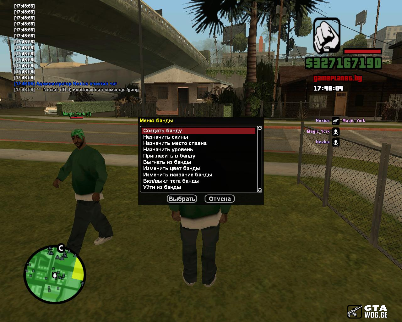 Groove, Ballas, Aztecs, Nangi, Vagos, Cops, Mafia, Bikers, Triads, Admins, Army, Clan ბანდიტი